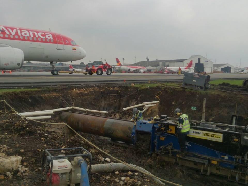 El proyecto contempló la ejecución de cruces subterráneos bajo pistas y calles de rodaje, destinados a sistemas de alcantarillado, garantizando la continuidad de las operaciones aeronáuticas sin interferencias ni afectación de la infraestructura superficial. Los trabajos se desarrollaron mediante tecnología de perforación sin zanja, instalando tuberías de acero al carbono de diámetros entre 24” y 48”, en tramos de entre 50 y 110 metros, alcanzando una longitud total aproximada de 1.600 metros.